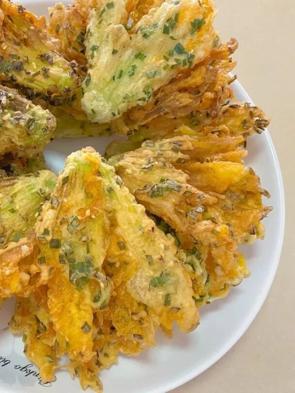 南瓜花是抚州乡野常吃的一道美味。花朵洗净、沥水,裹上面粉糊糊,入锅油炸而成的油炸南瓜花,花瓣轻薄、面粉糊香脆,两者相得益彰。